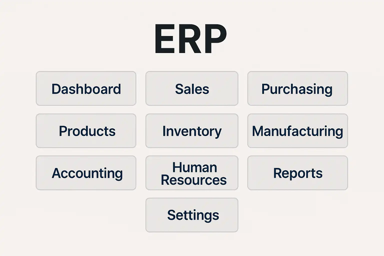 ERP系统的菜单通常根据模块划分,主要包括以下几类: