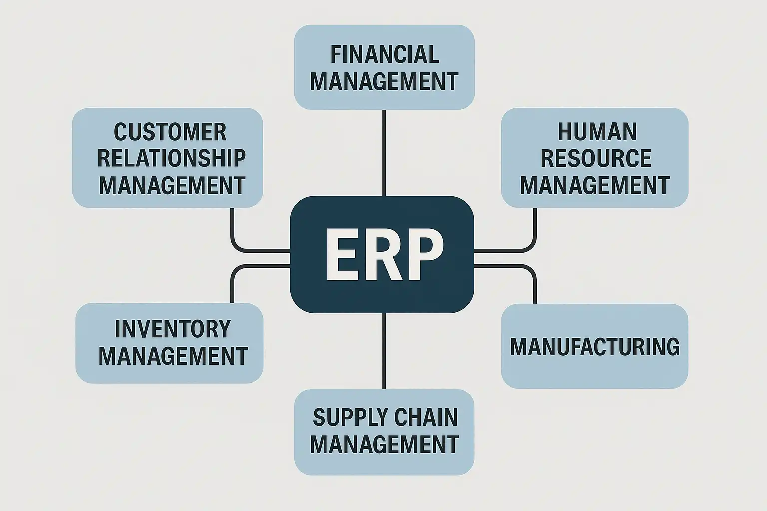 大多数主流ERP产品都包含一套基础的标准功能模块,这些核心子系统覆盖了一个企业日常运营所需的主要业务领域。常见模块如下: