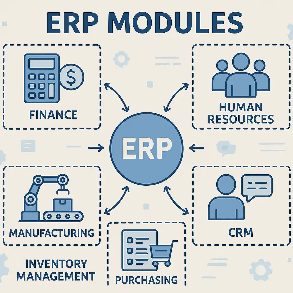 ERP系统通常分为多个核心模块,以支持企业各方面的管理需求。主要模块包括: