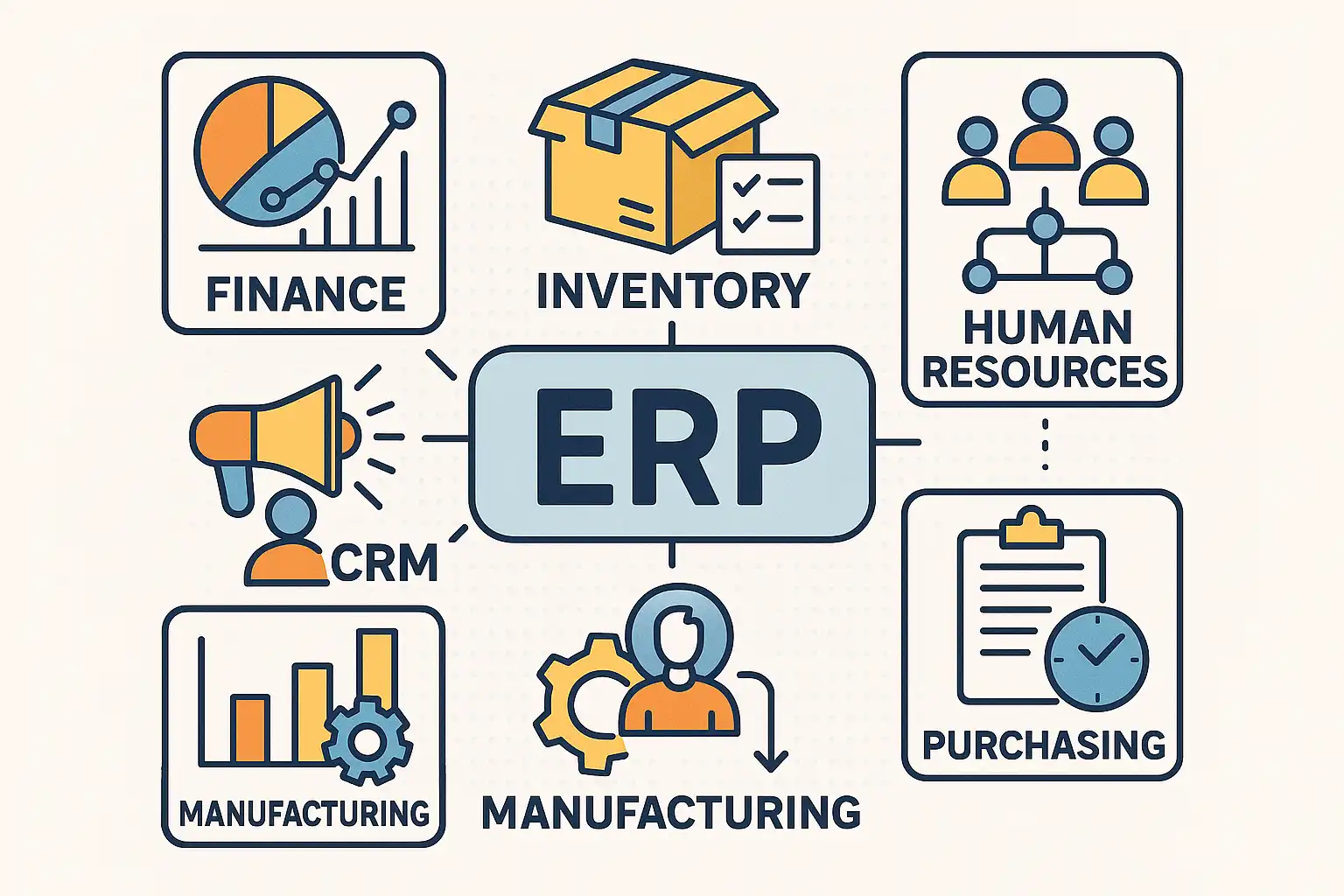 ERP系统由多个核心模块组成,每个模块负责不同的业务领域。以下列举了常见的主要模块及其功能: