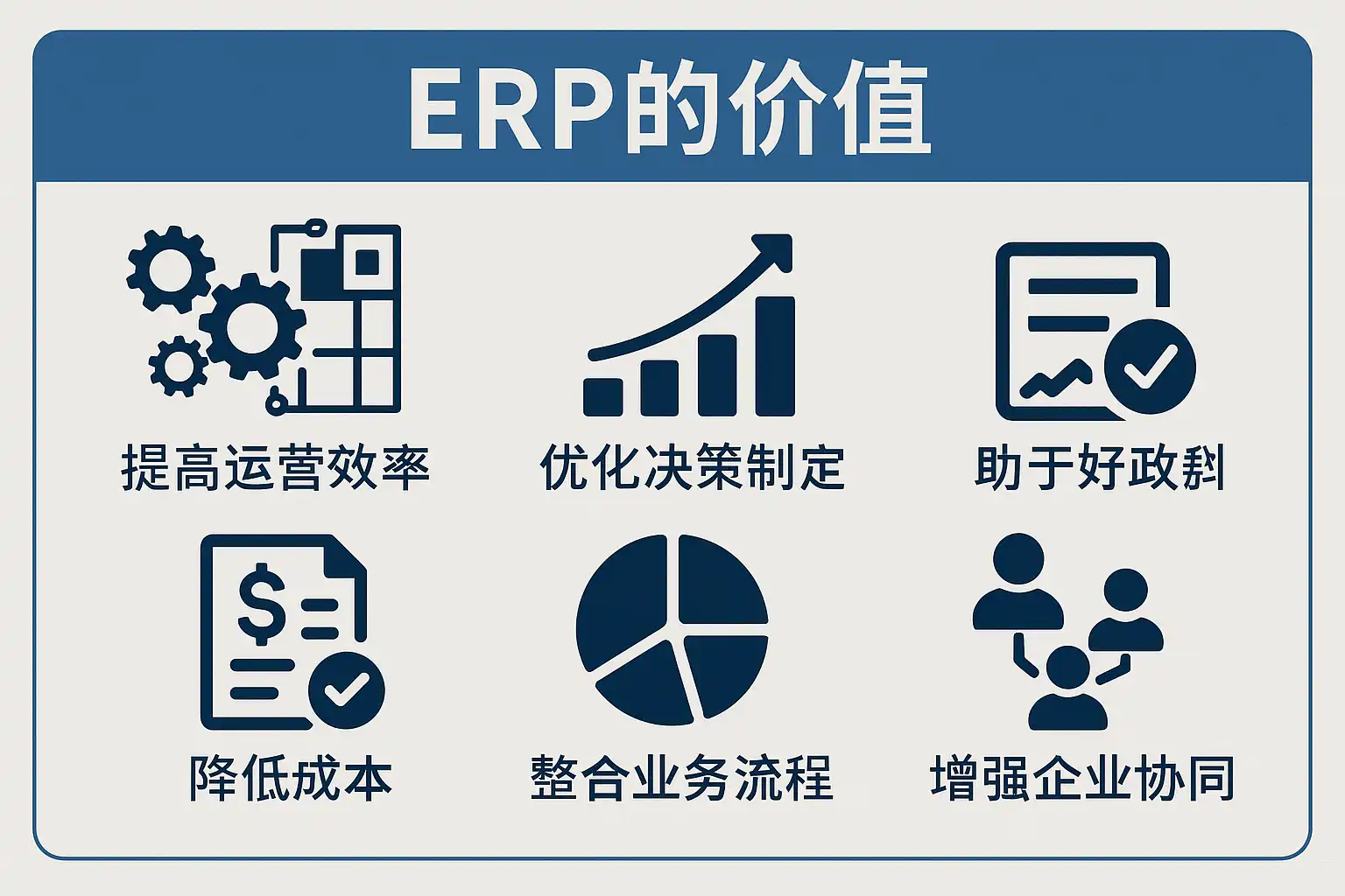 ERP(Enterprise Resource Planning, 企业资源计划)系统是现代企业信息化的重要基础设施,它以整合所有核心业务流程为目标,实现数据流、资金流与物流的高度统一。下面总结了ERP系统对企业带来的主要价值: