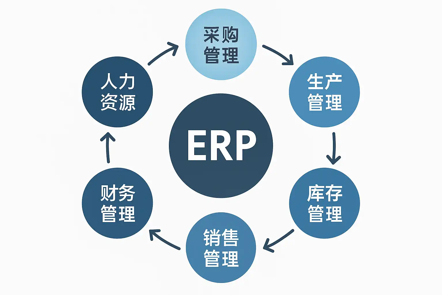 ERP(Enterprise Resource Planning,企业资源计划)是集成了多个业务模块的平台,贯穿企业运营的各个方面,其主要包含以下六大核心环节: