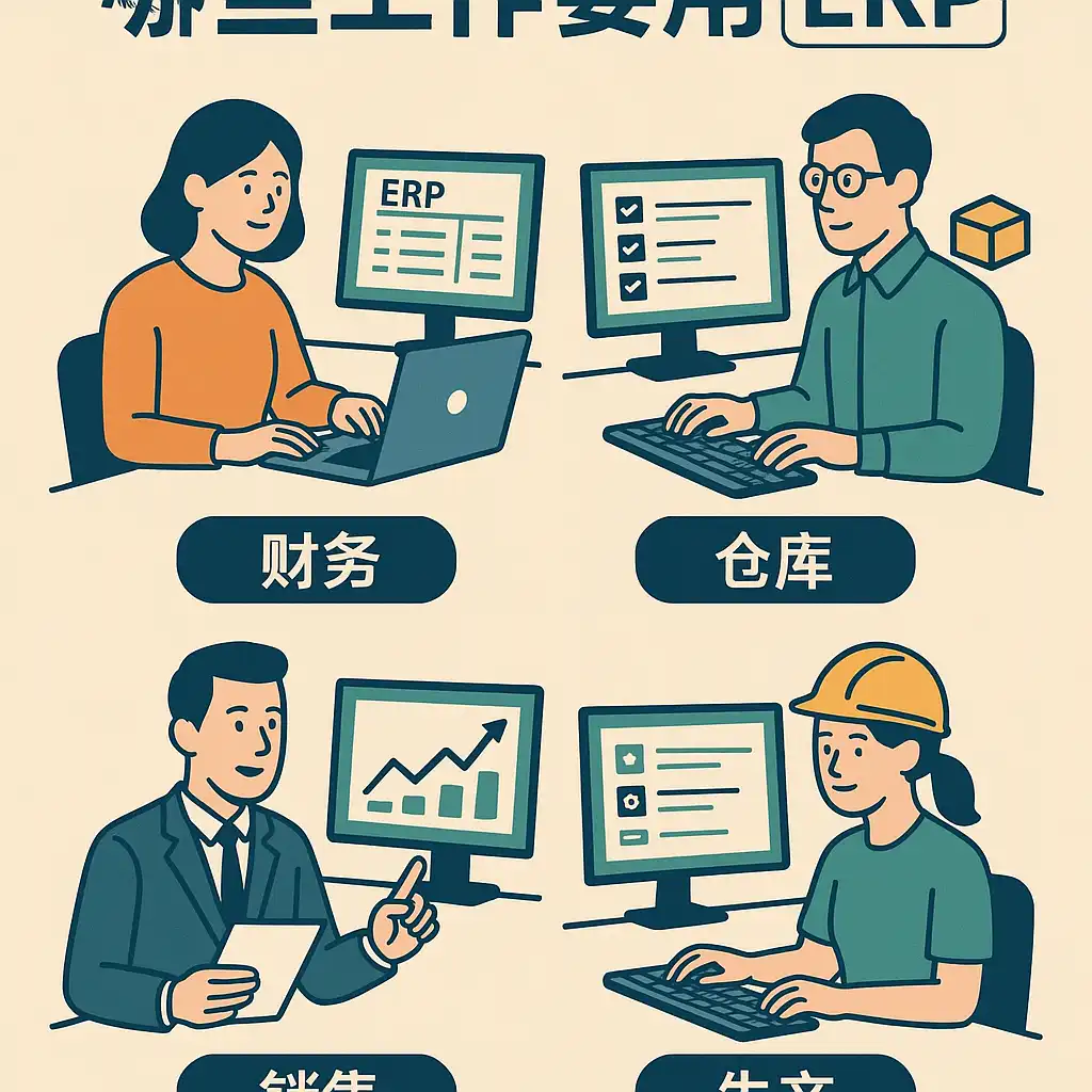 ERP(Enterprise Resource Planning,企业资源计划)系统覆盖了企业内部几乎所有关键业务领域。以下是适合使用ERP系统的主要工作类型: