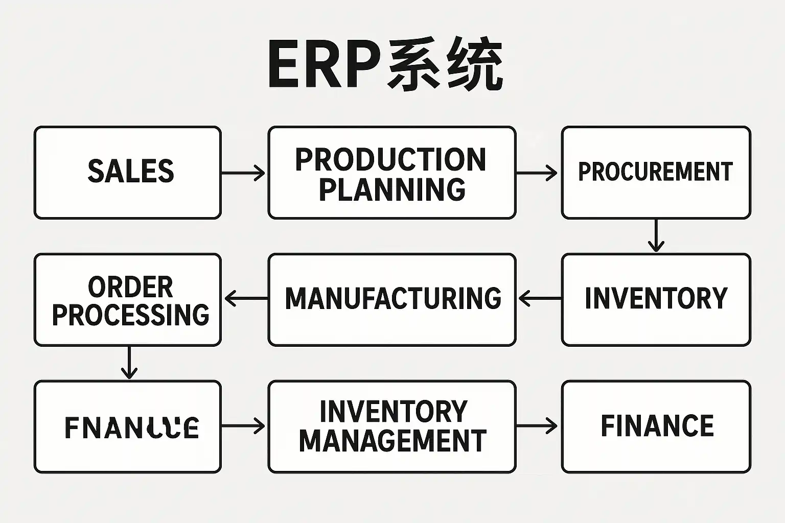 ERP系统整合了企业的多个核心部门与业务模块,实现了跨部门的信息共享和流程协同。一般而言,典型的ERP系统涵盖以下主要流程: