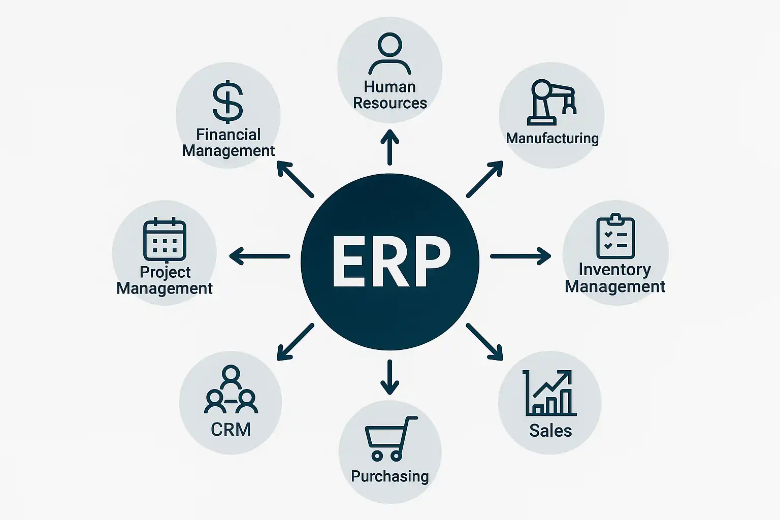 ERP软件的核心功能主要包括财务管理、供应链管理、生产计划、人力资源管理和客户关系管理(CRM)。