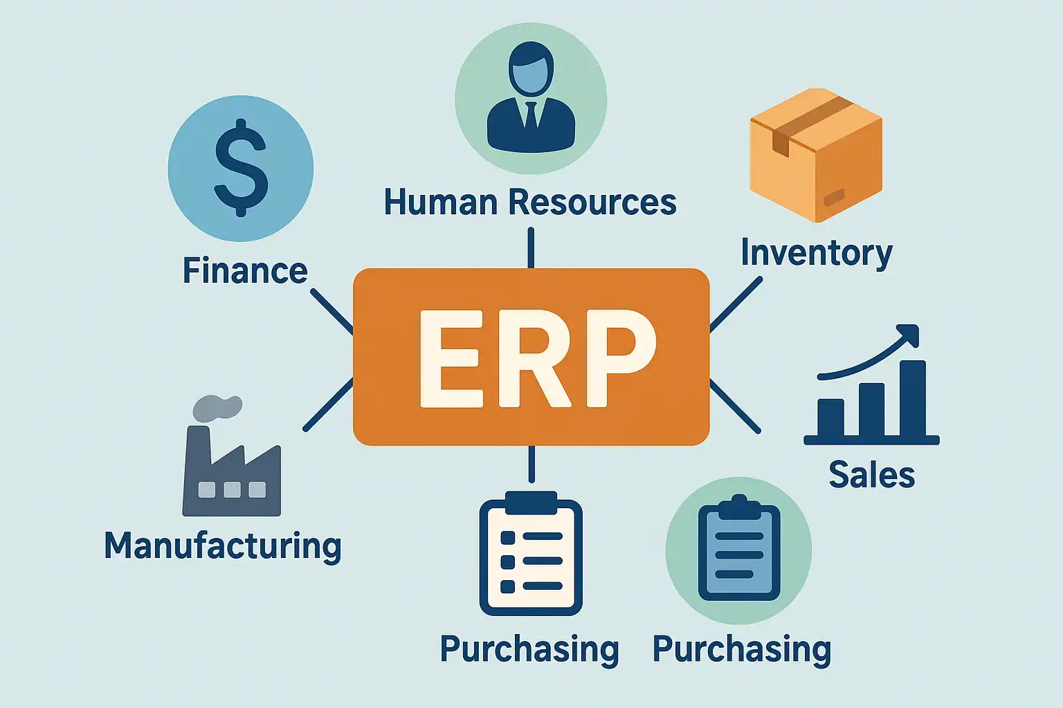 - 财务(FIN):贯穿收支两端,实现会计核算自动化及报表生成。