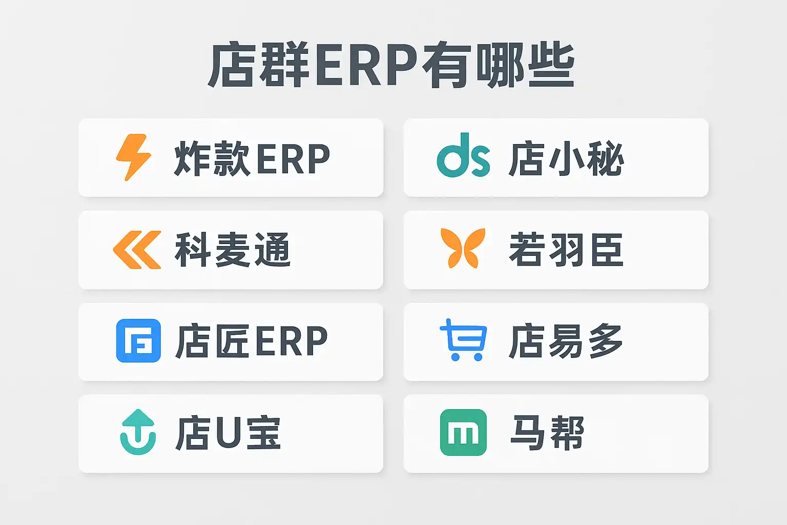 目前市面上主流的店群ERP系统品牌较多,不同产品在功能侧重点与适用场景上各有差异。以下表格汇总了常见的几款: