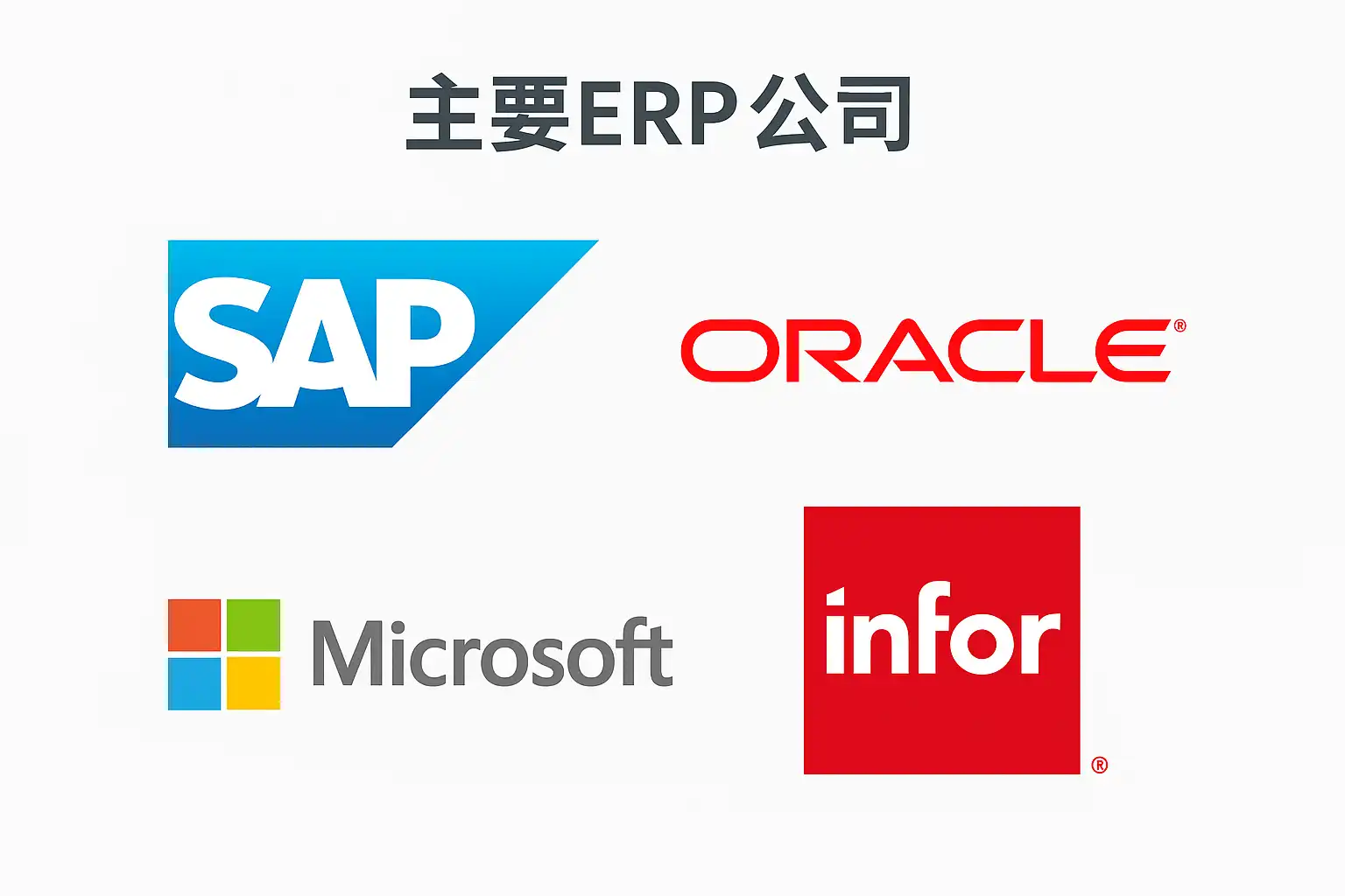 目前市场上的主要ERP公司包括SAP、Oracle、Microsoft Dynamics以及Infor,这些公司凭借强大的功能和全球客户基础,覆盖制造业、零售业、金融服务等多个行业。具体优势如下: