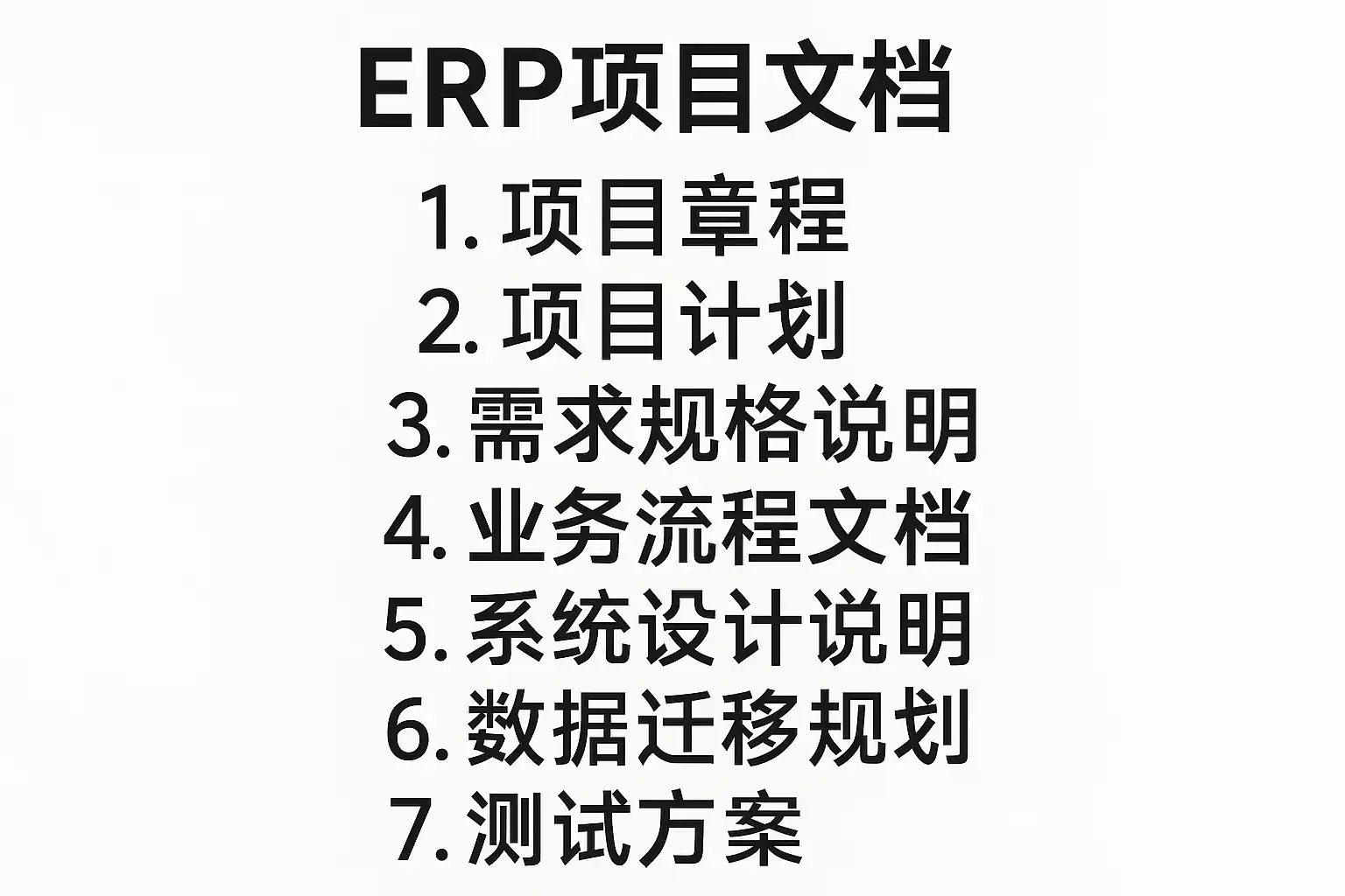 在ERP项目的实施过程中,规范化、高质量的文档体系是确保项目成功落地、便于后期维护升级的重要保障。主要分为以下几大类: