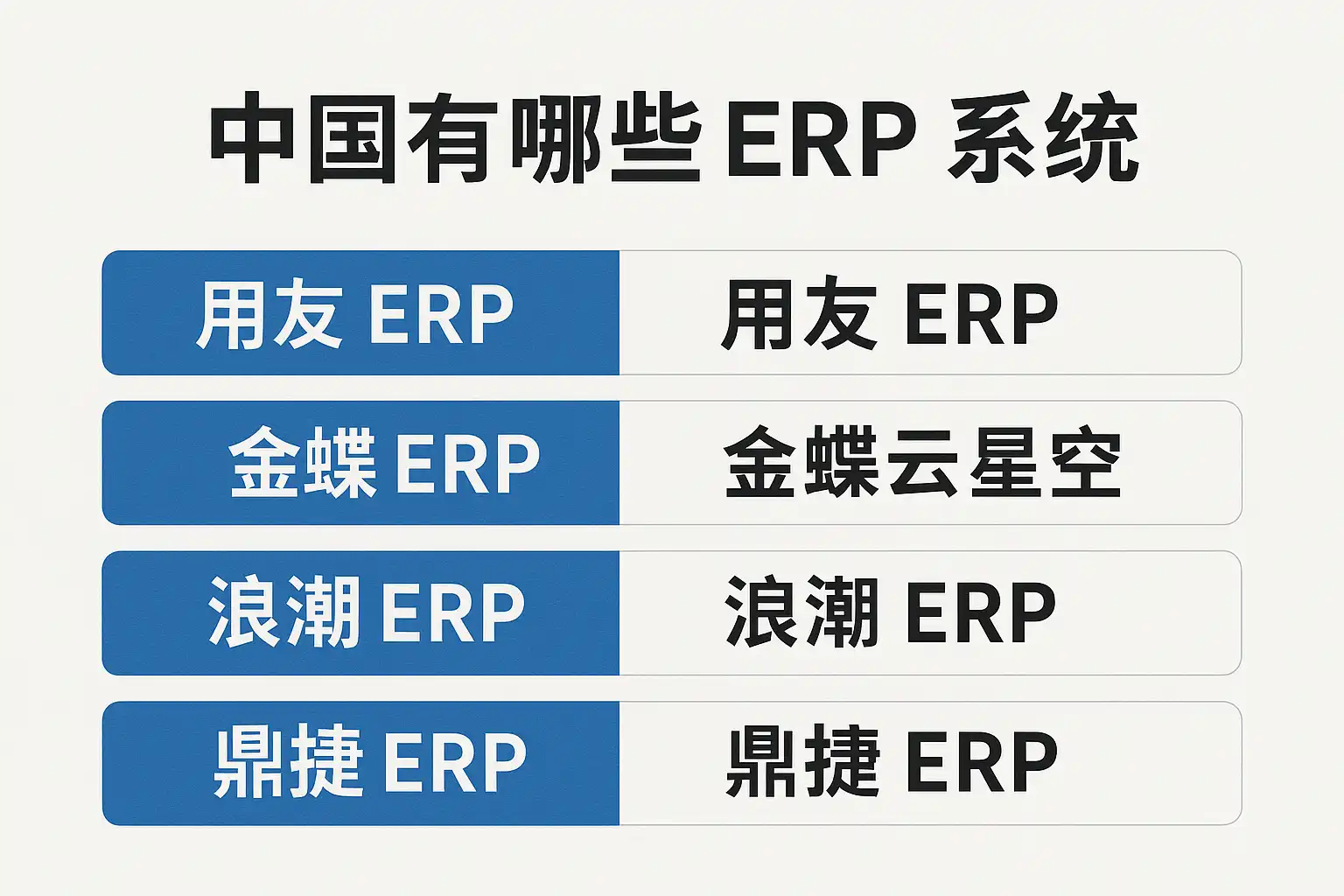 | 用友U8/U9 | 用友网络 | 功能全面,国产龙头 | 大中型 | 制造业/服务业/零售 |