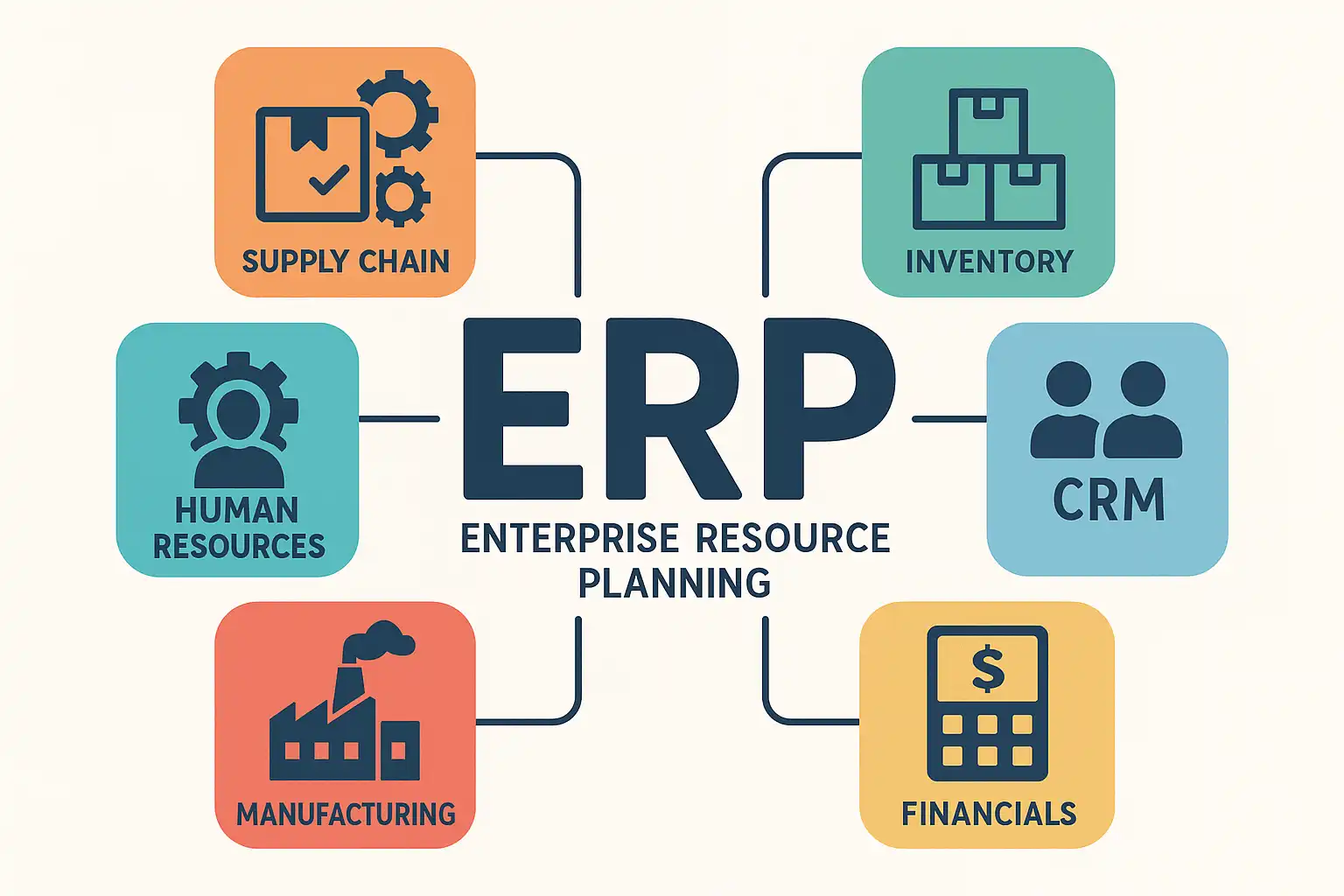 - 供应链管理(SCM):涵盖采购、库存和物流管理。