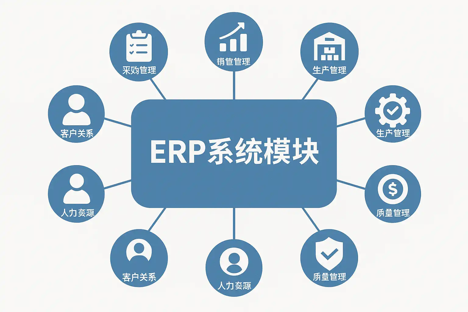 ERP(Enterprise Resource Planning,企业资源计划)系统是整合了企业各项资源,实现信息流通与业务协同的综合性平台。它通过多个功能模块覆盖了企业经营活动的主要环节,每个模块均有其独立功能,同时又能高效协作。