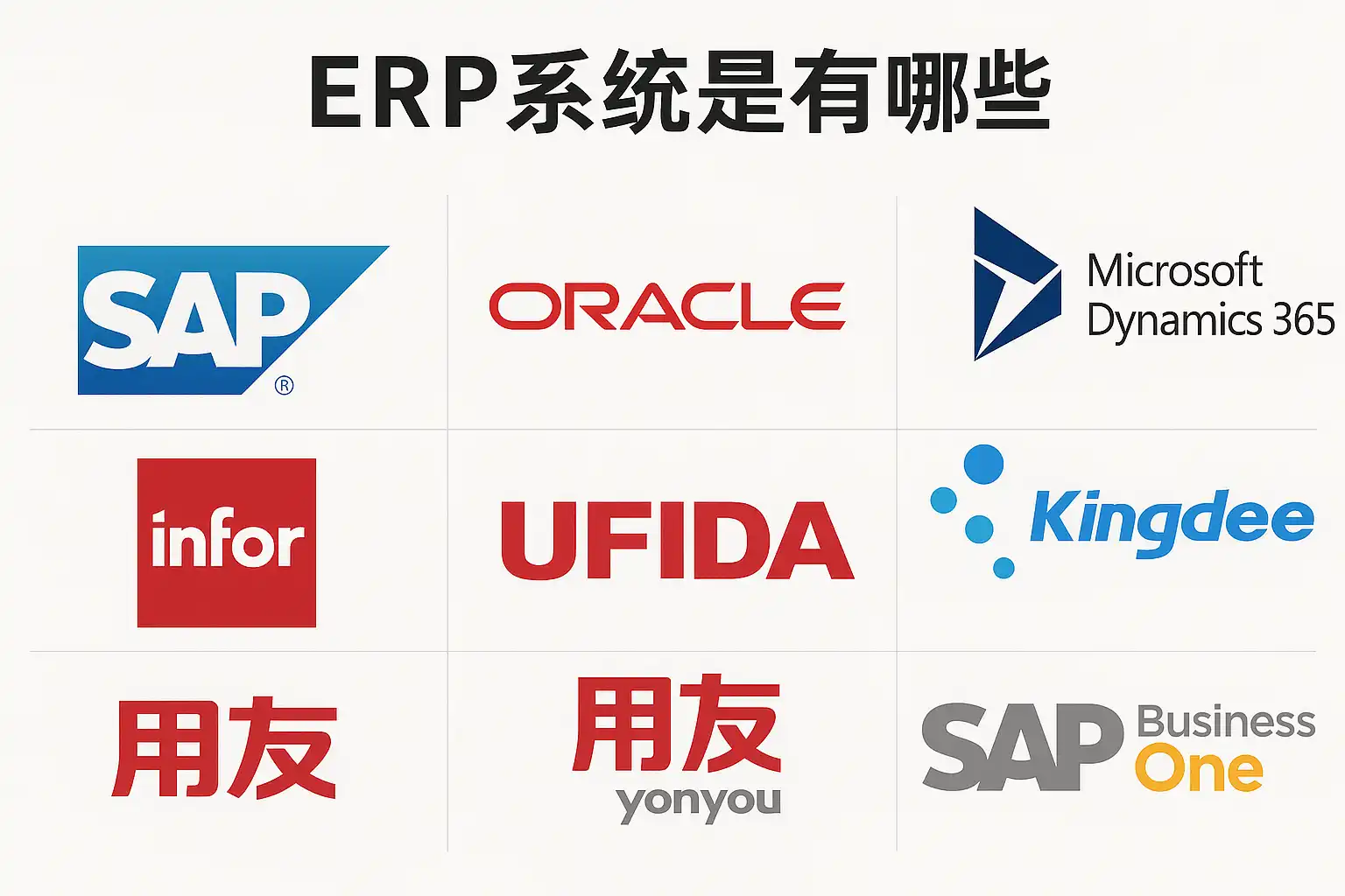 SAP ERP、Oracle ERP Cloud等国际主流产品,以及国内的金蝶K/3系列。