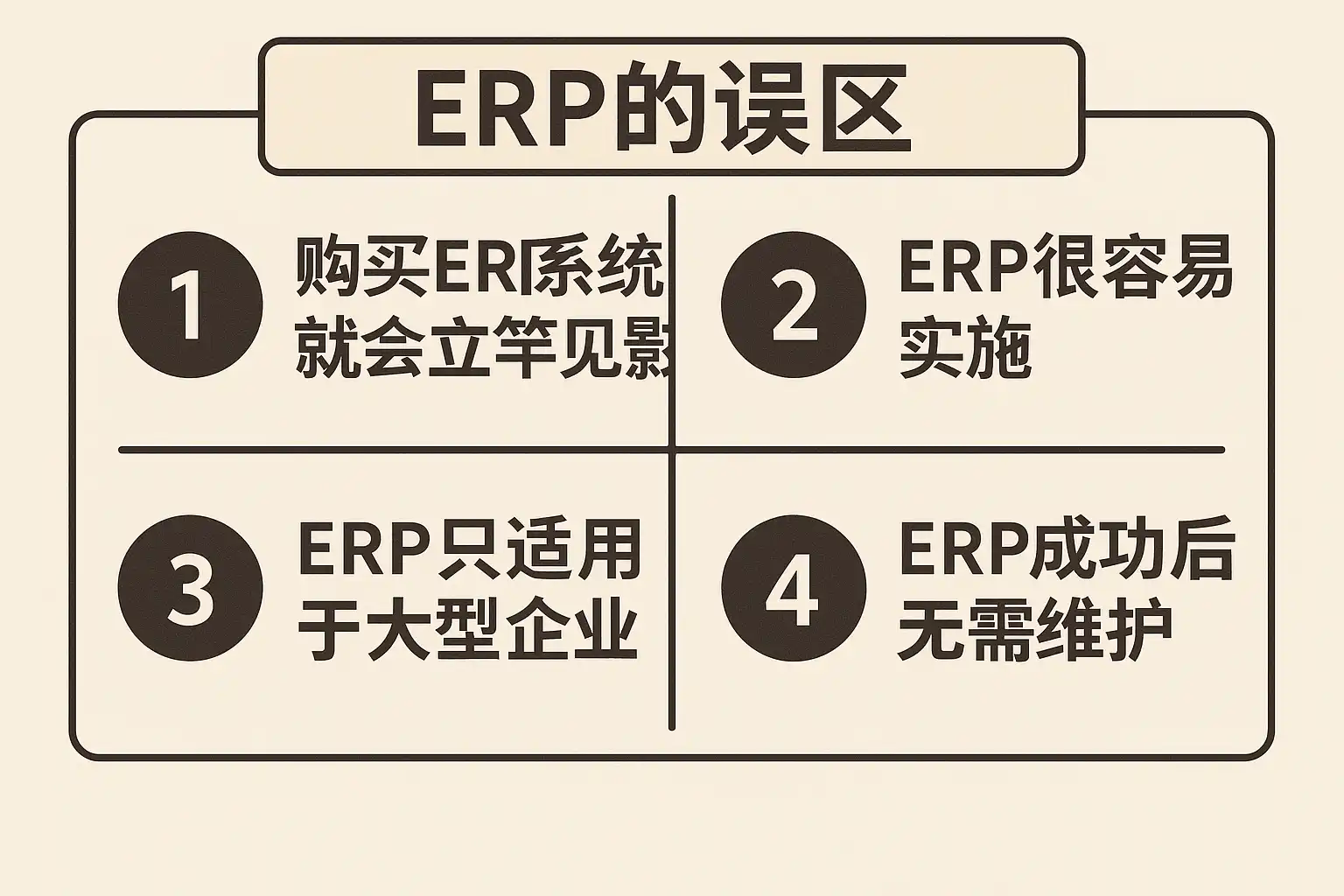 我在学习ERP系统的时候,发现网上对它的功能和作用有很多不同的说法。我想了解一下,ERP系统到底有哪些常见的误区?这些误区会不会影响企业选择和实施ERP?