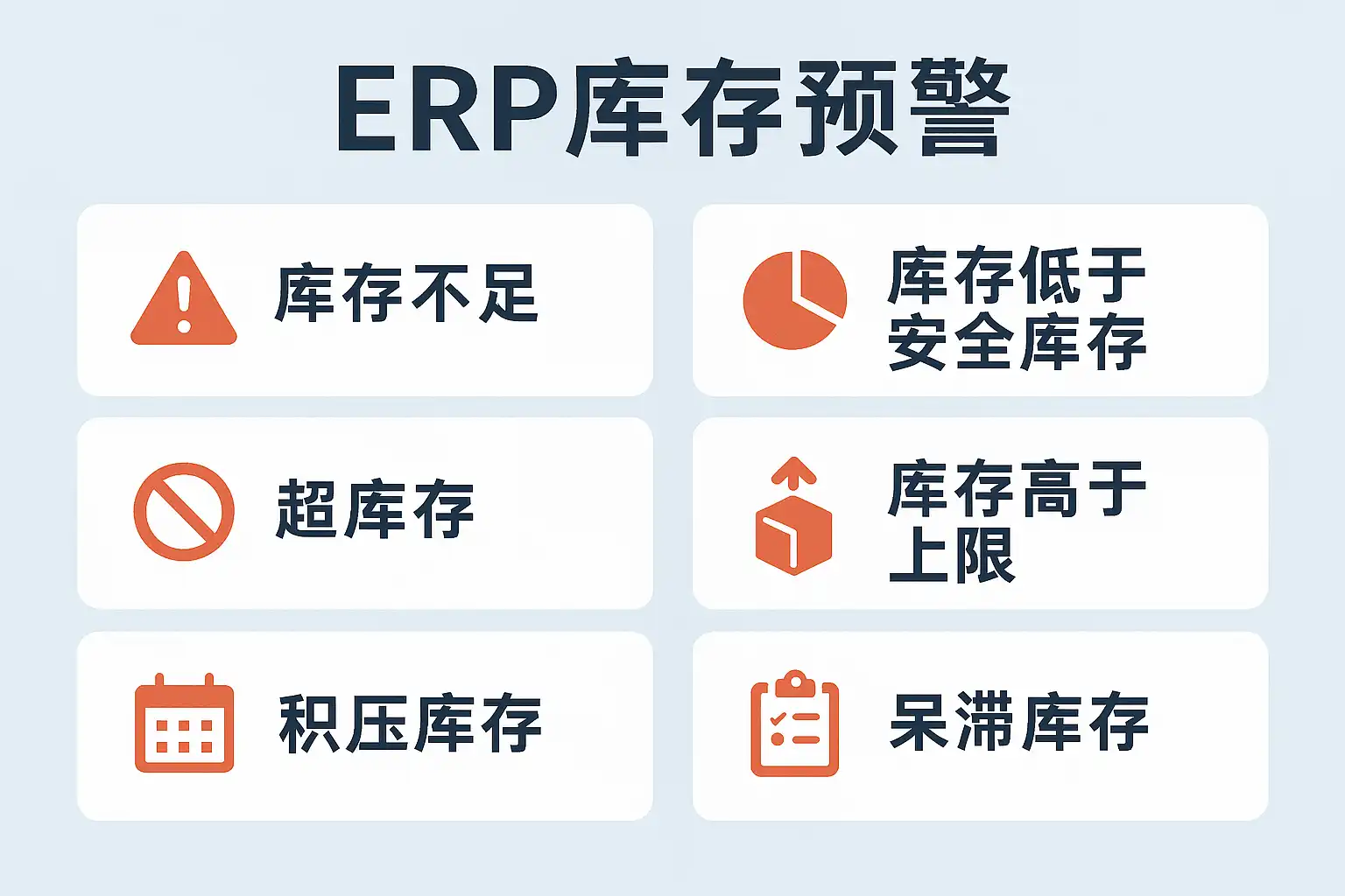 ERP库存预警主要包括以下几种常见类型: