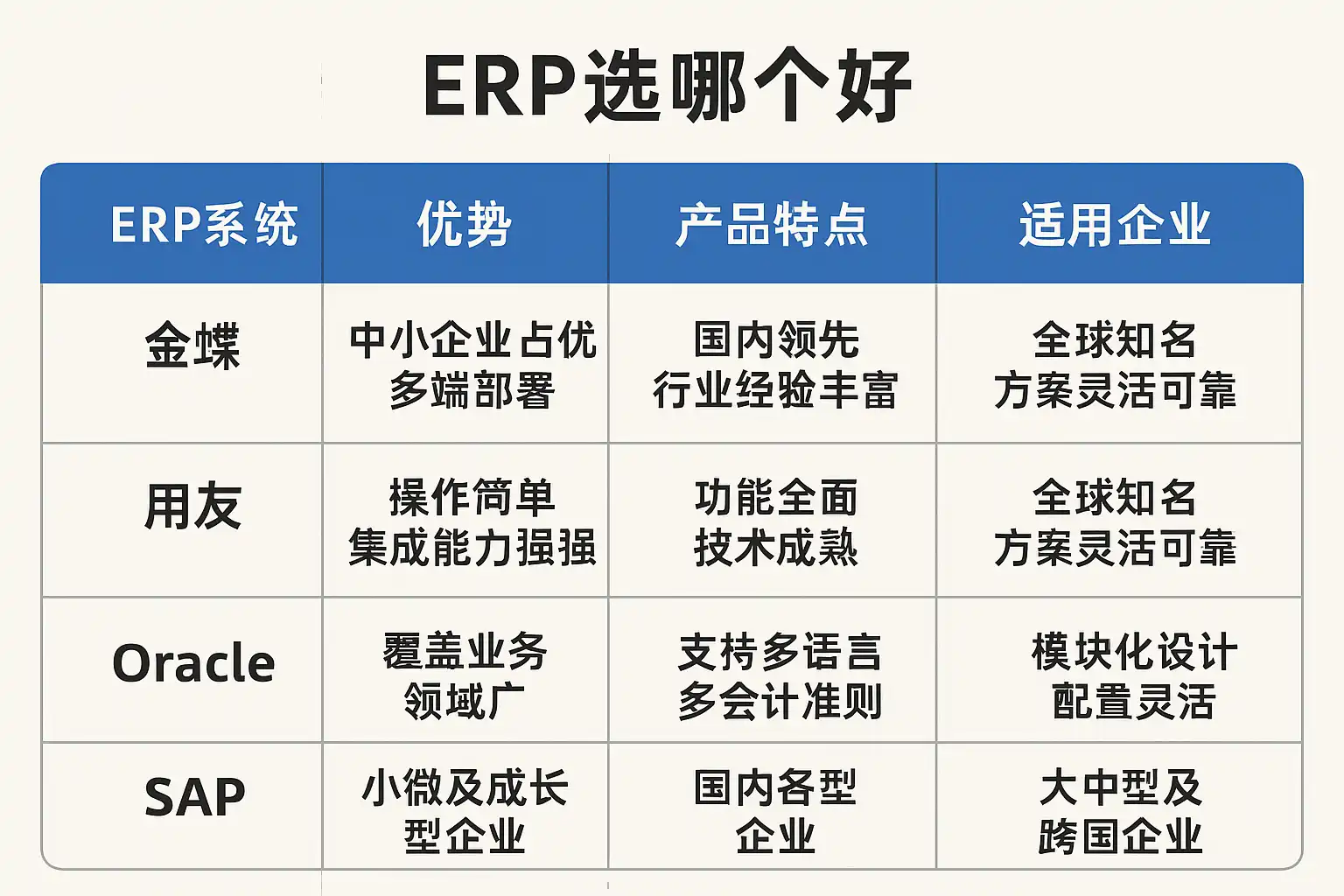 综上,基于企业具体需求定制化选择,是判断“ERP选哪个好”的关键。