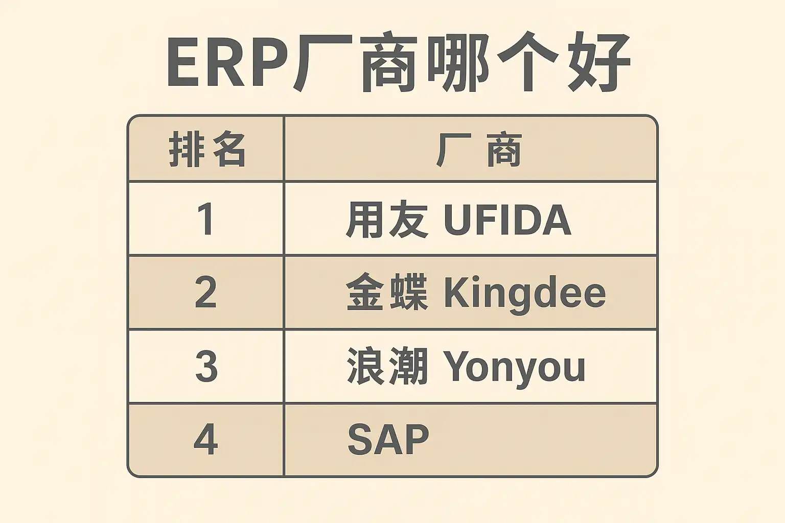| 国际巨头 | SAP、Oracle | 功能全面、稳定性高、价格昂贵 | 大型集团/跨国企业 |