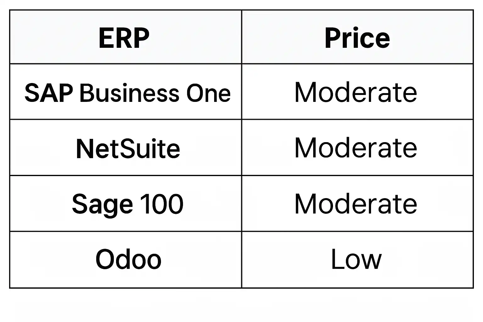 例如,Odoo作为开源ERP,基础版价格较低且模块丰富,适合预算有限的中小企业。