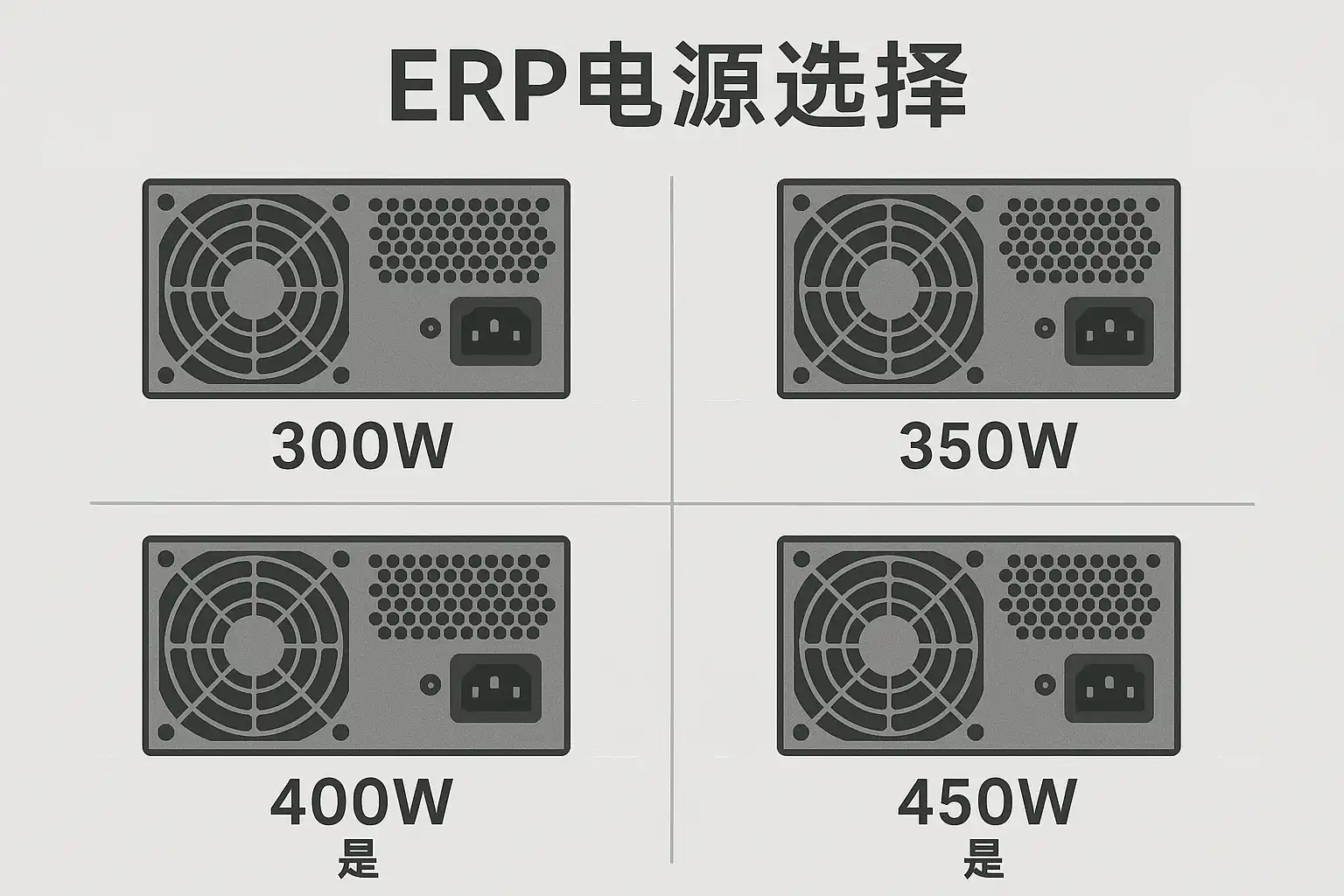 - 功率容量(W):确保电源能满足ERP硬件的最大负载,通常建议预留20%-30%的余量。