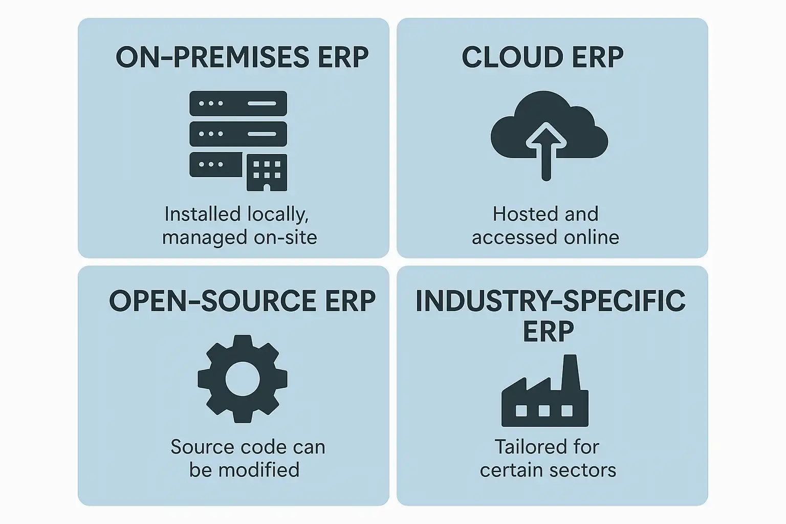 选择合适的ERP类型主要取决于企业规模、IT基础设施和预算。常见的ERP类型包括:
