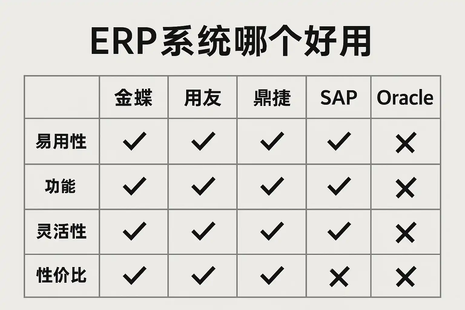 | 用友U8/U9 | 中大型 | 中国本土化功能强;财务集成完善 | 定制开发较重 |