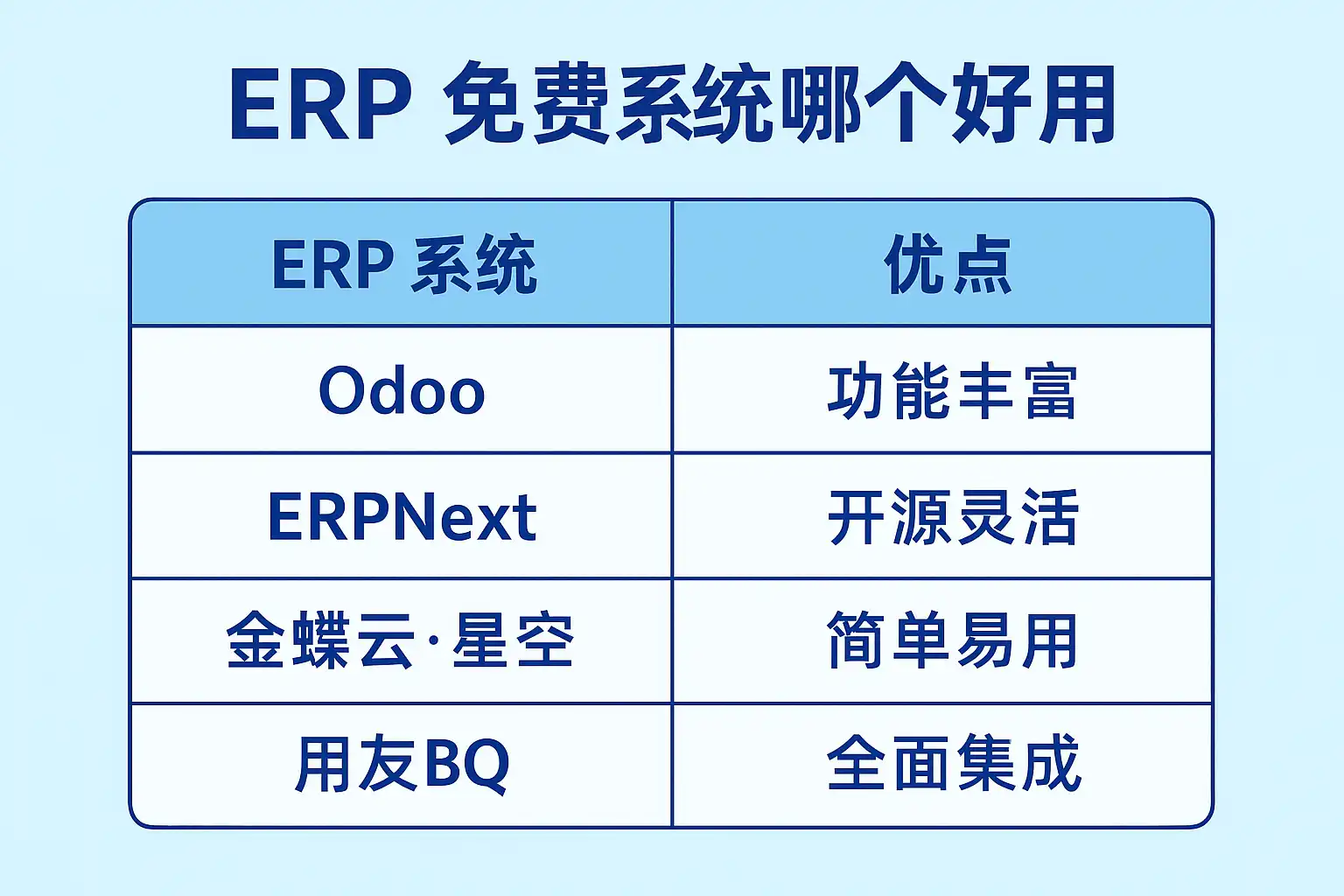 一、免费ERP系统主流选择对比