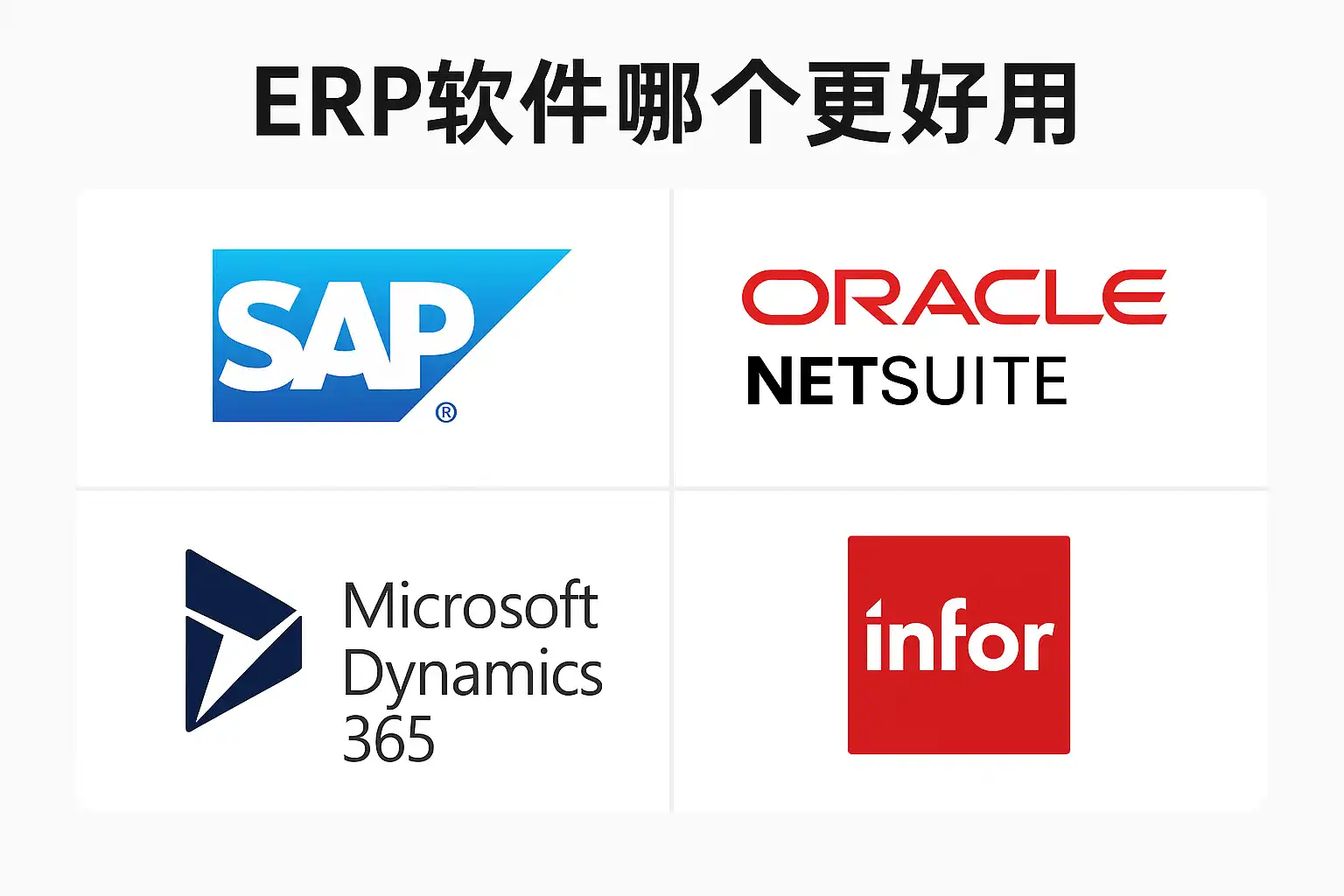 - 用友U8/U9或金蝶K3 Cloud等本土品牌更贴近中国政策和制造行业需求。