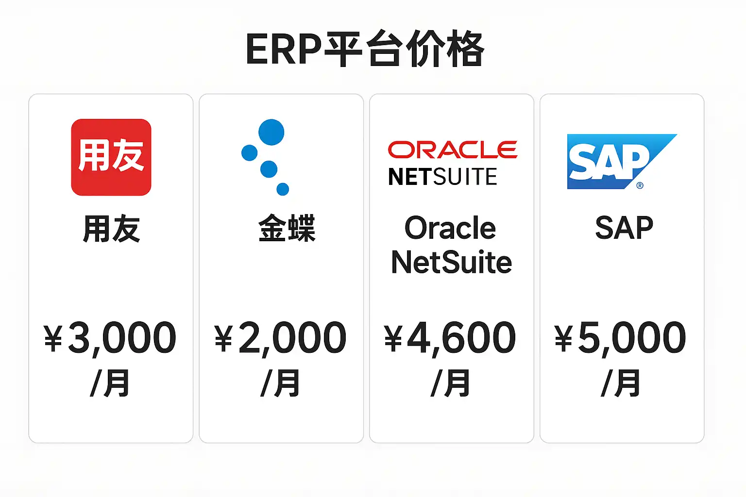 | Oracle NetSuite | 25-60 | 25+ | 支持 | 大型及跨国公司 |