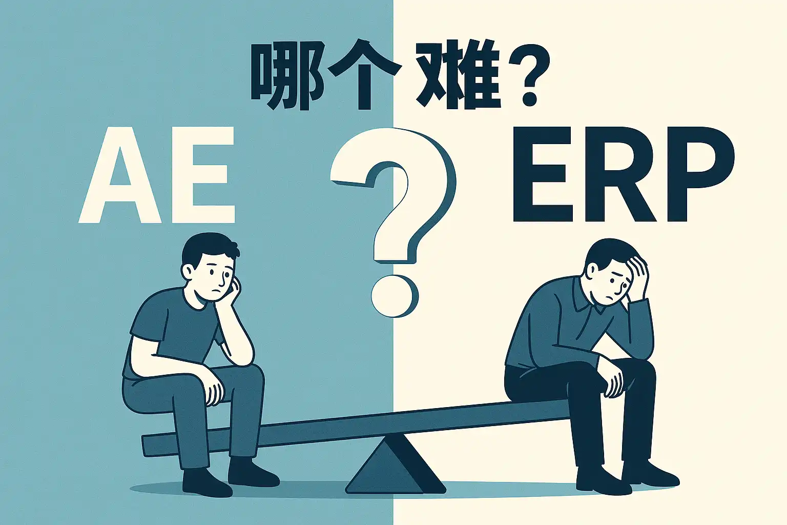 我想了解如果分别投入相同的时间来学习AE和ERP,大致能达到什么水平?两者在学习周期上有什么明显差异吗?