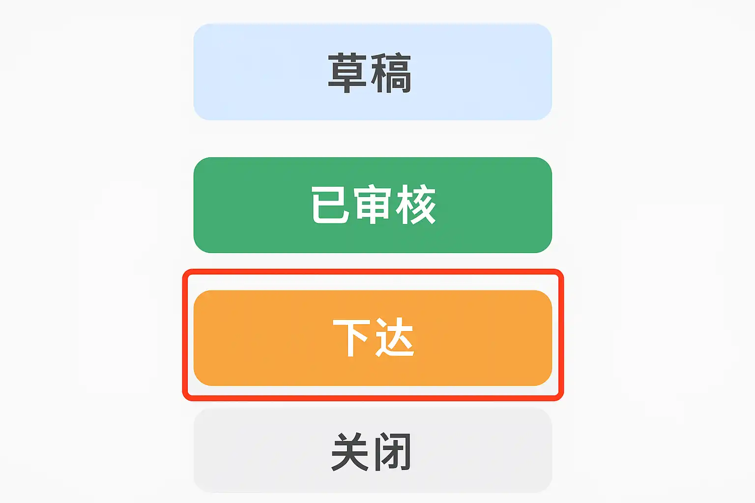 | 下达 | 已下达 | 执行部门可据此行动 |