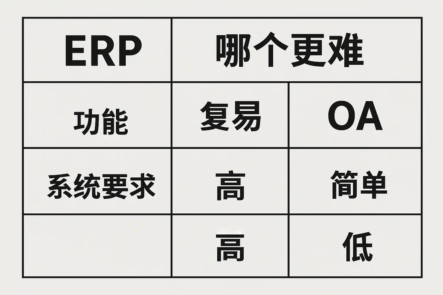 | 难点类别 | ERP | OA |
