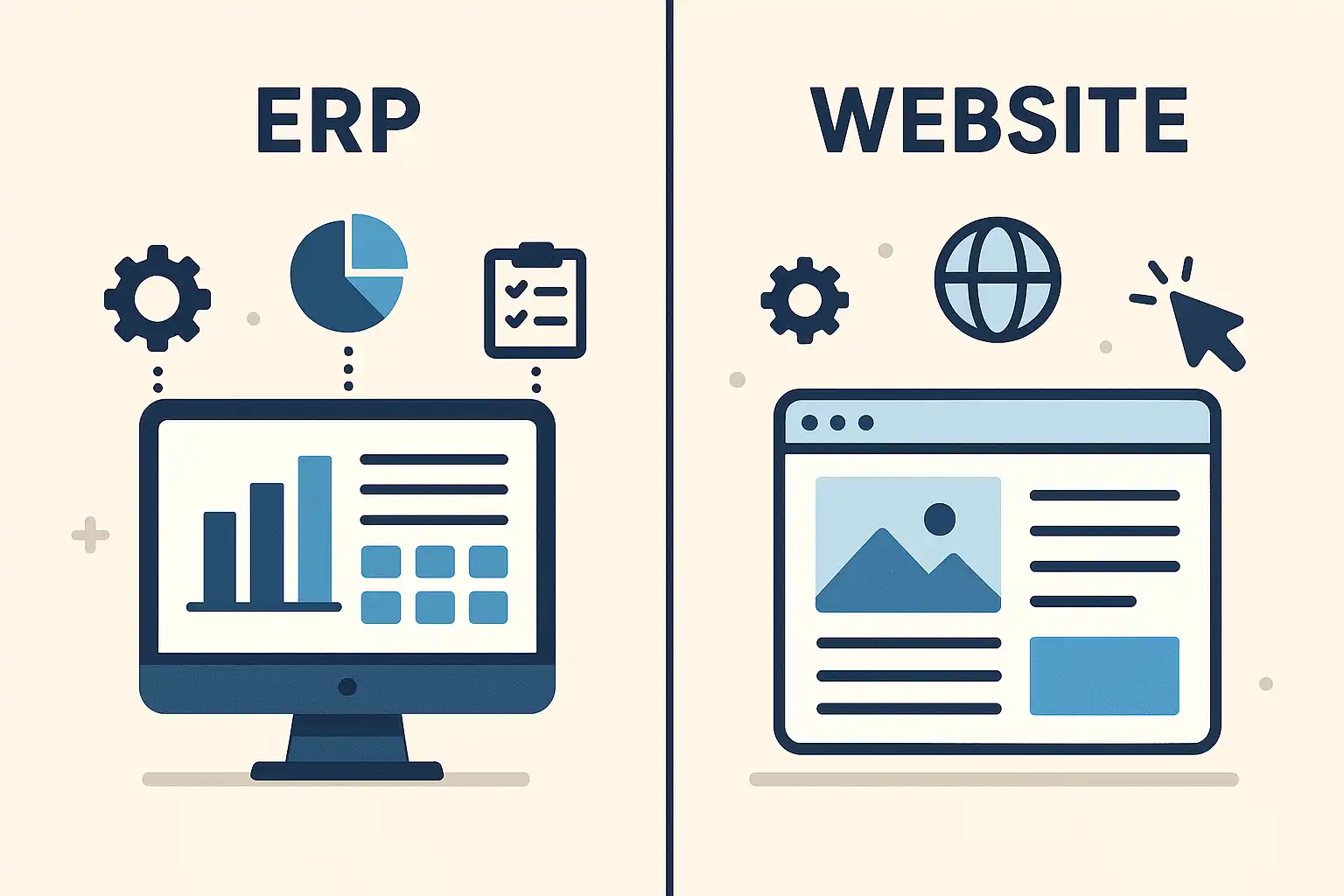 我听说ERP和网站在处理数据方面有很大不同,但具体差异在哪里?作为非技术背景的人,我想知道它们分别如何帮助我管理业务数据,有没有直观的对比?