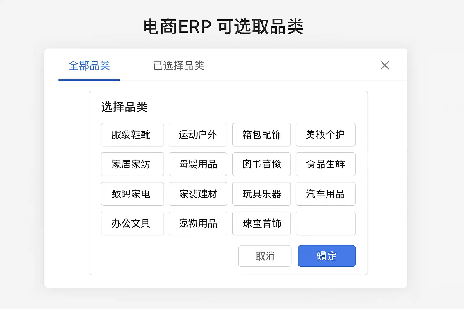 “选品类”是指企业在商品运营管理过程中,根据市场需求、销售策略或内部标准,从海量商品中筛选合适的商品种类进行重点经营。现代ERP(Enterprise Resource Planning)系统通常将“商品分类管理”作为基础模块,并通过自定义字段、多维数据过滤及标签系统,实现灵活的选品操作。