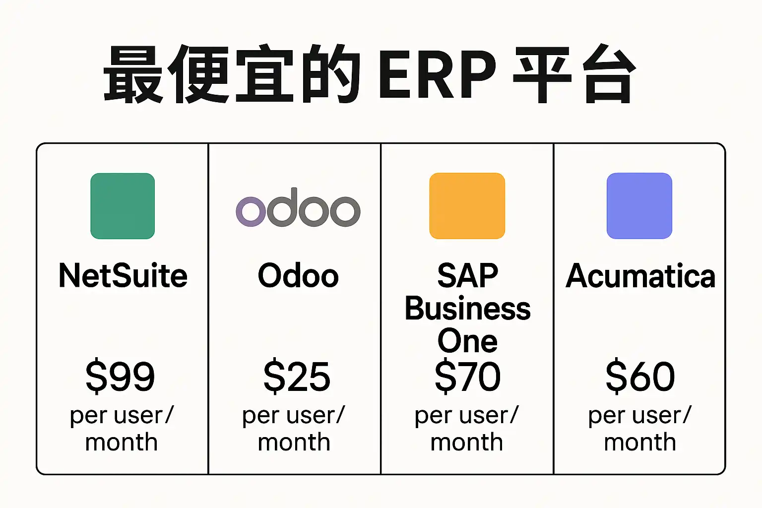 要判定哪个ERP平台最便宜,需要在同等条件下分别考察各主流品牌的价格体系,包括:起步价、可用功能范围与扩展费用。以下表格对比了几款常见选择: