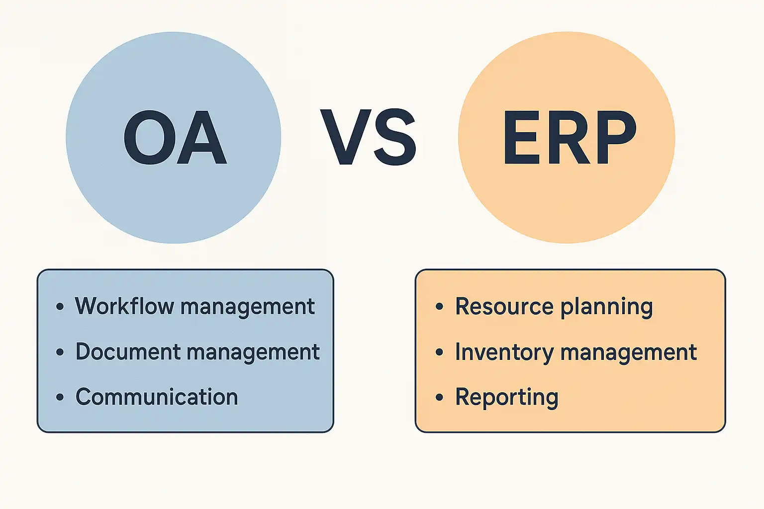 我在选择办公自动化系统(OA)和企业资源规划系统(ERP)时感到困惑,不知道两者的主要区别在哪里,哪个更适合我的公司使用?