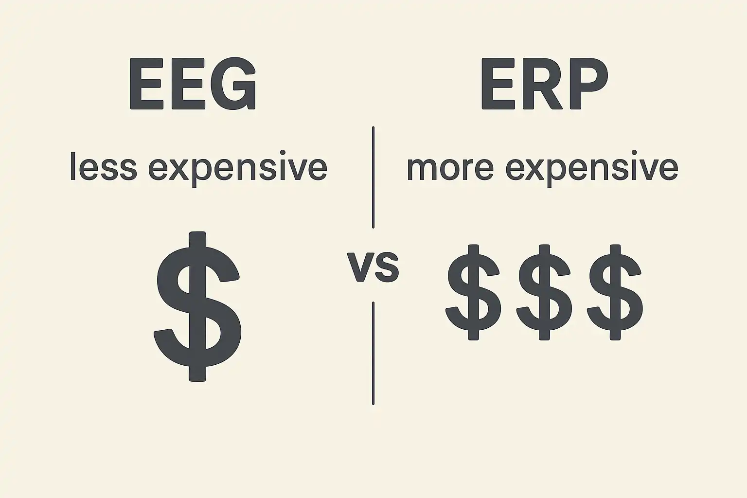 综合来看,ERP整体花费通常比单纯的EEG采集更贵,因为需要更多的数据分析支持和实验设计投入。