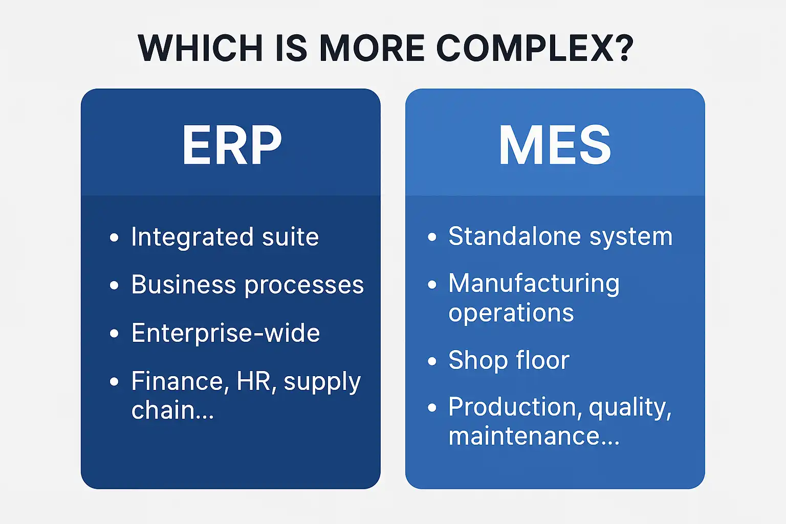 我在考虑企业管理系统的时候,总是搞不清楚ERP和MES哪个系统更复杂。它们都涉及很多功能,但我想了解哪个系统在实施和维护上需要更多的技术投入?