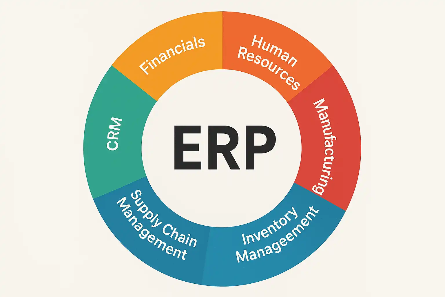 ERP(Enterprise Resource Planning,企业资源计划)是一套集成的信息管理系统,其核心目的是整合企业内部各类资源,提高运营效率。主流ERP系统一般涵盖如下核心模块: