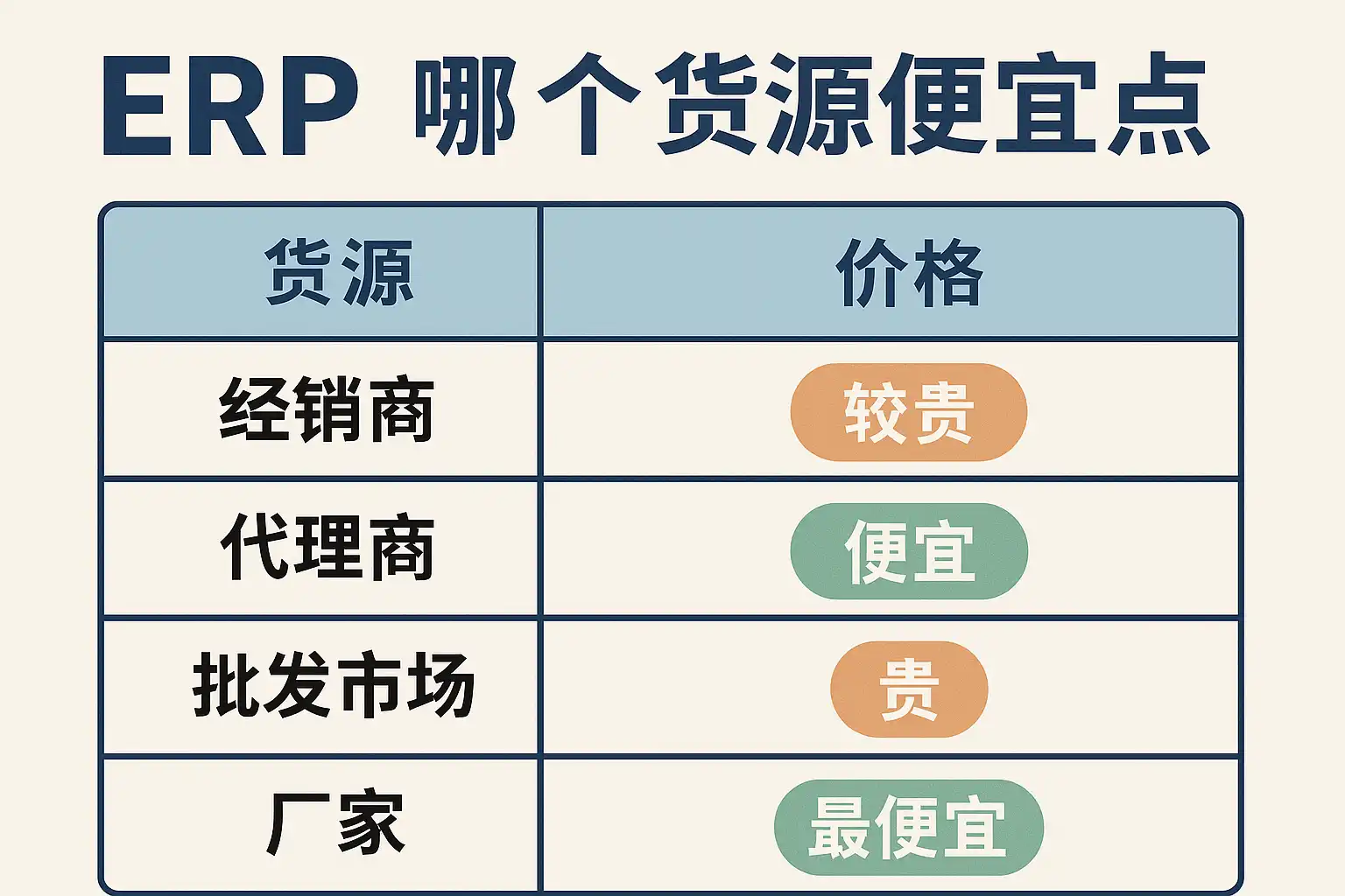 ERP系统中,哪些货源渠道的价格更便宜?