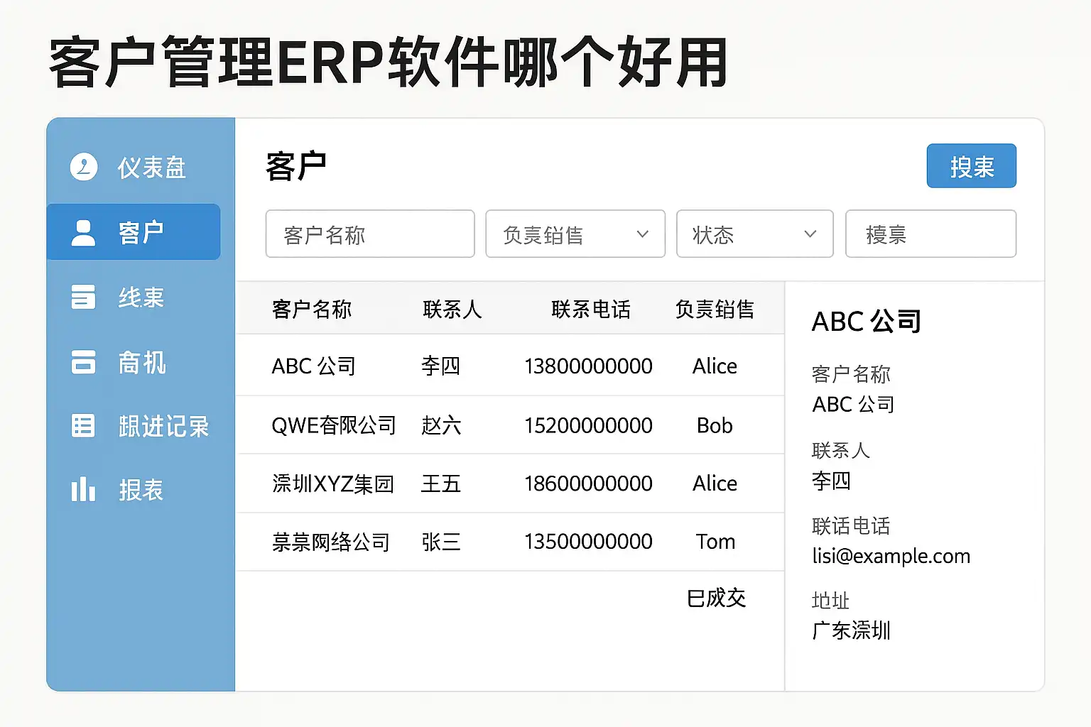 当前市场上主流的几款客户管理ERP软件各具特色,下表对比了它们的主要优劣势: