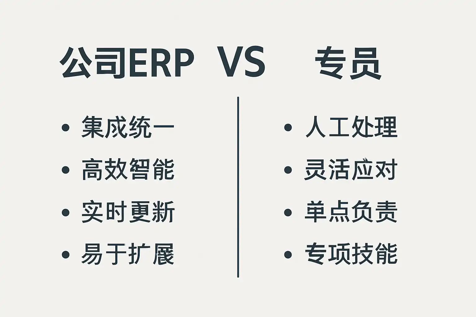 | 项目 | 公司ERP系统 | 专员人工管理 |