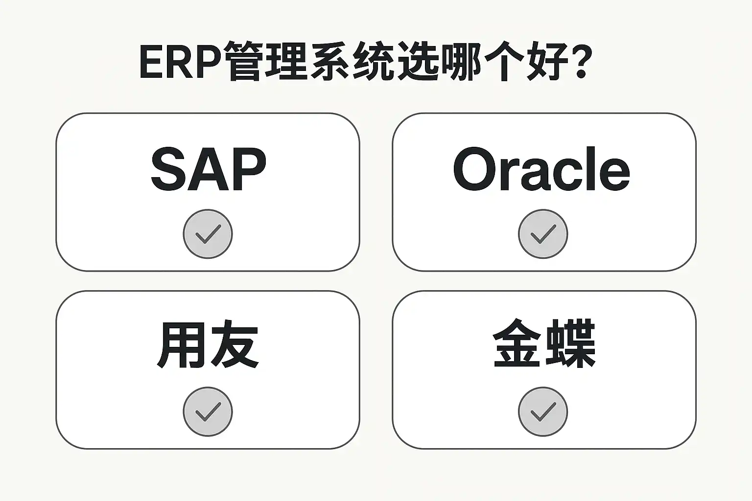 | 用友 | 国内主流 | 本土化好,中大型行业解决方案 | 中大型制造/分销/服务业 |