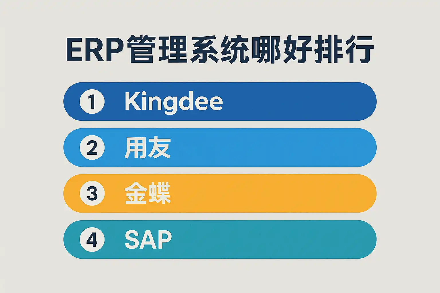 | 3 | 用友U8 | 中大型企业 | 本土化强,财务及供应链突出 |