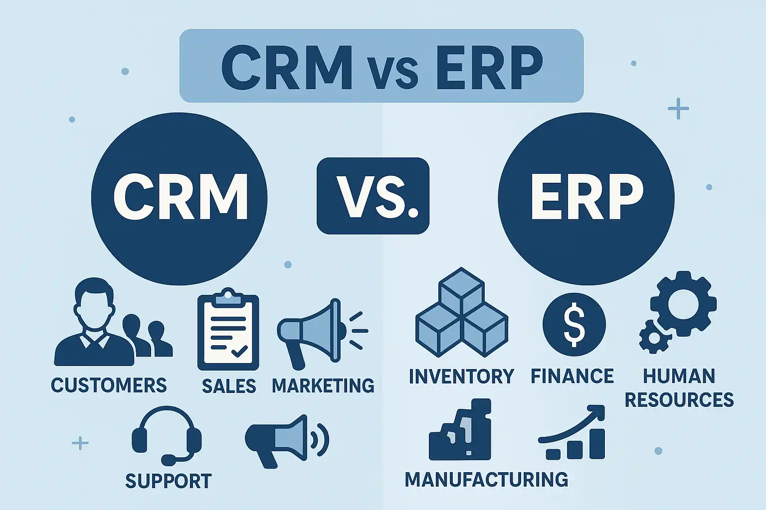 我一直搞不清楚CRM和ERP的核心功能到底有什么区别,它们具体管理哪些业务模块?知道这些能帮我判断哪个系统更适合我的公司。