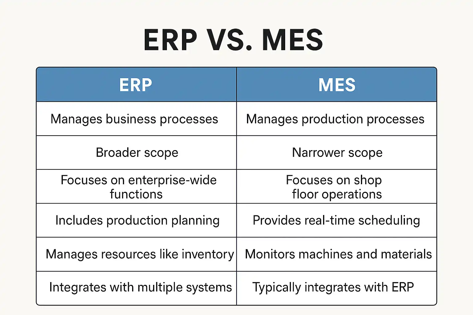ERP和MES系统的主要区别是什么?