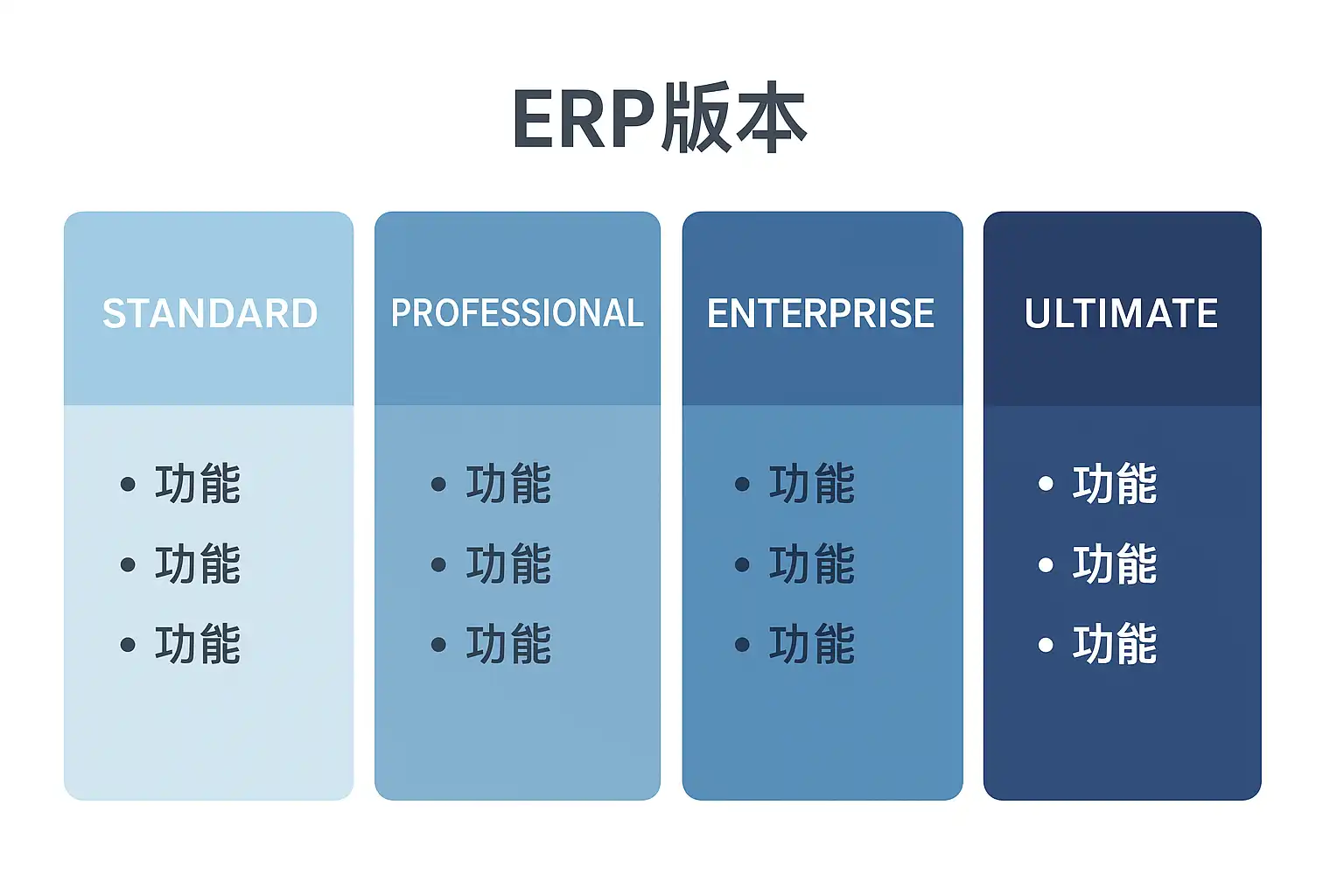 ERP不同版本主要在功能模块、定制化程度和技术支持方面存在差异: