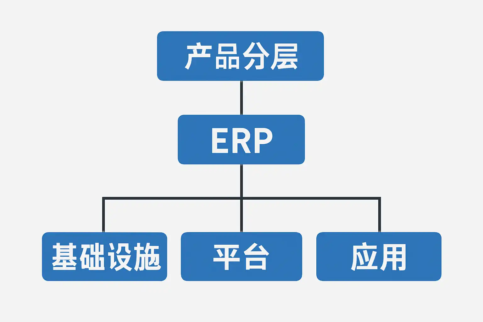 我最近听说ERP系统在企业管理中非常重要,但不太清楚它具体属于哪个层次的产品。能否帮我详细解释一下ERP在产品层级中的位置?