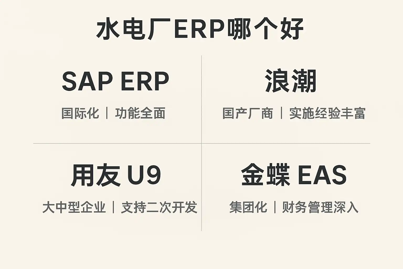 目前常见的可用于水电行业的主流ERP系统,包括国内外知名品牌及新兴SaaS产品。以下是部分代表性产品横向对比: