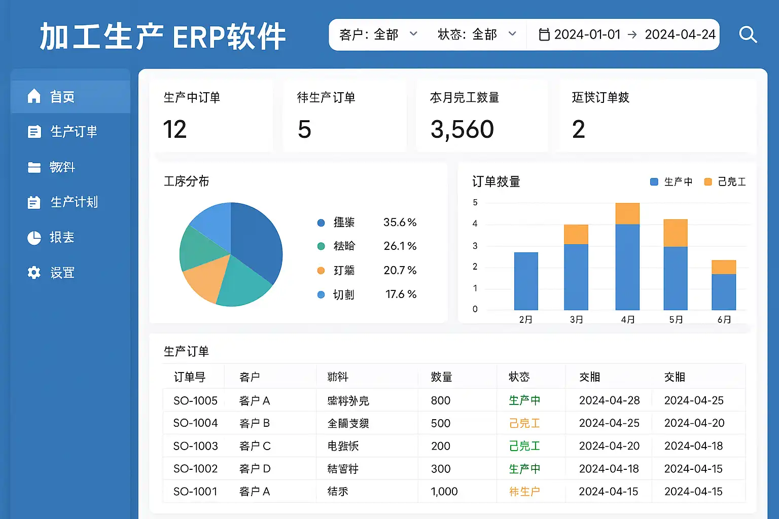 - 客户下单→排产→发货→售后全流程闭环跟踪