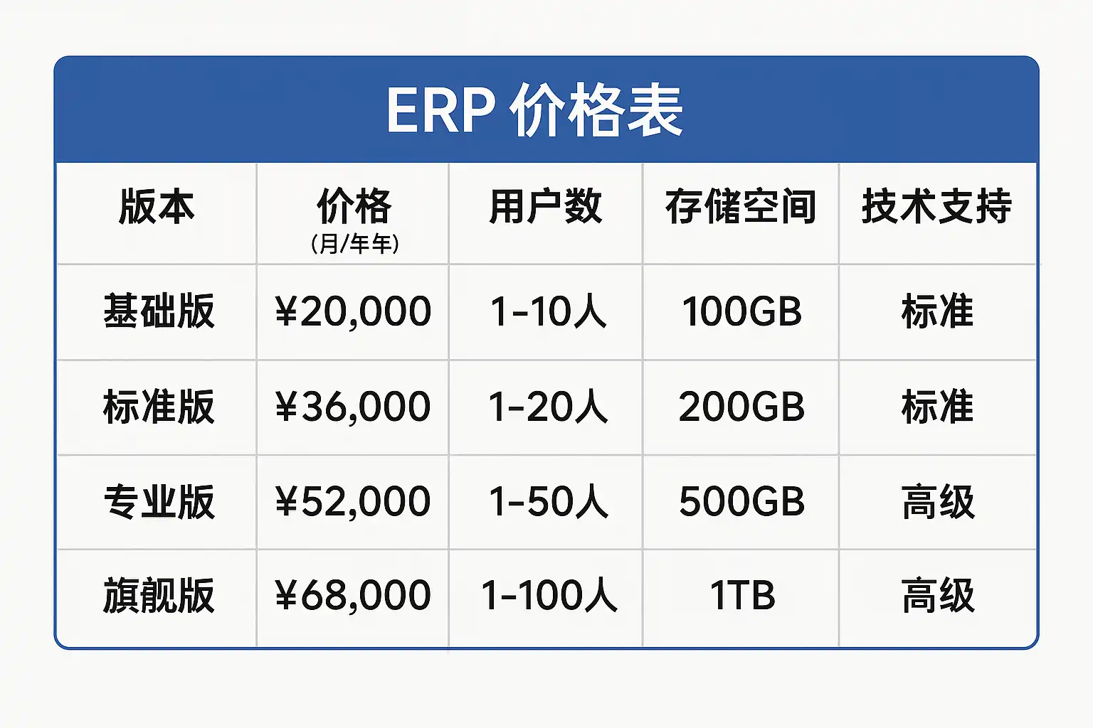 明确价格来源与结构,是理解“erp价格表”的关键。不同品牌和部署模式下,其组成方式差异显著: